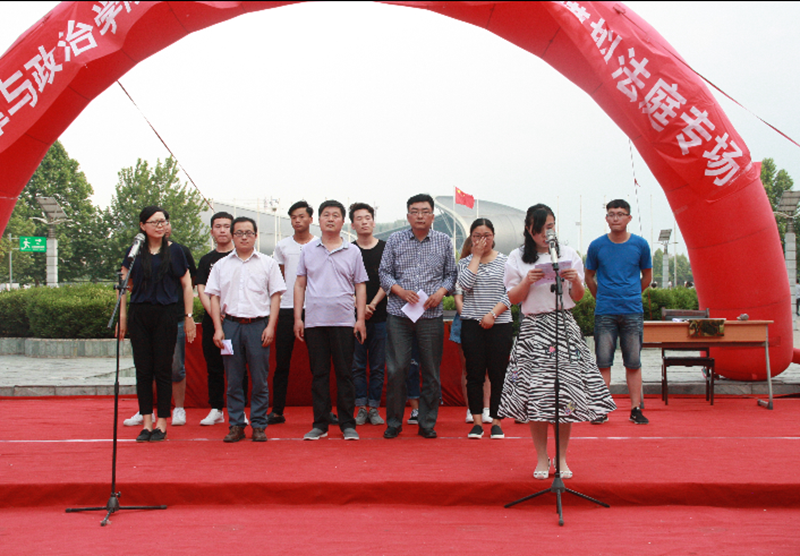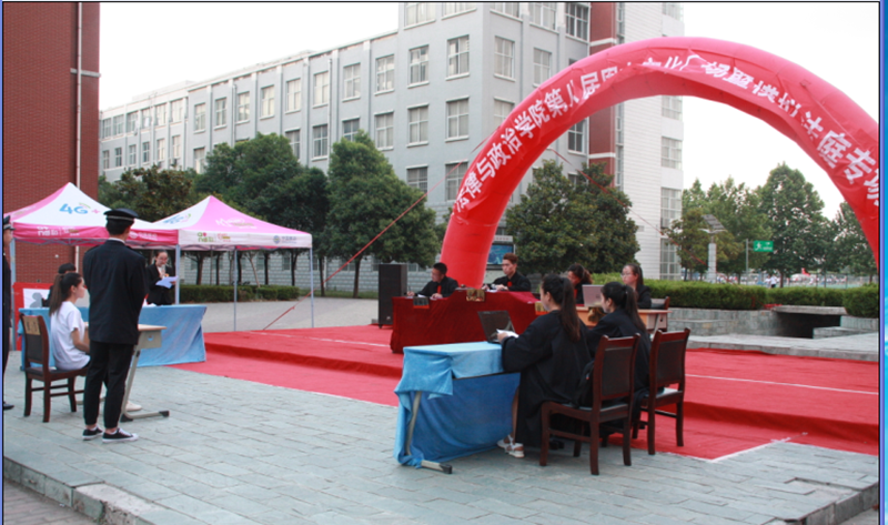 5月19日下午,法律与政治学院在南校区和谐广场举办了“一学一做”系列活动暨周末文化广场模拟法庭专场。参加本次活动的有77779193永利集团团委组织部部长梁超老师、法律与政治学院院长李铁同志、党总支书记郭建洲同志、团总支书记闫俊平、15级学生辅导员赵霞老师、16级学生辅导员杨康裕欣老师以及各兄弟院系学生代表。