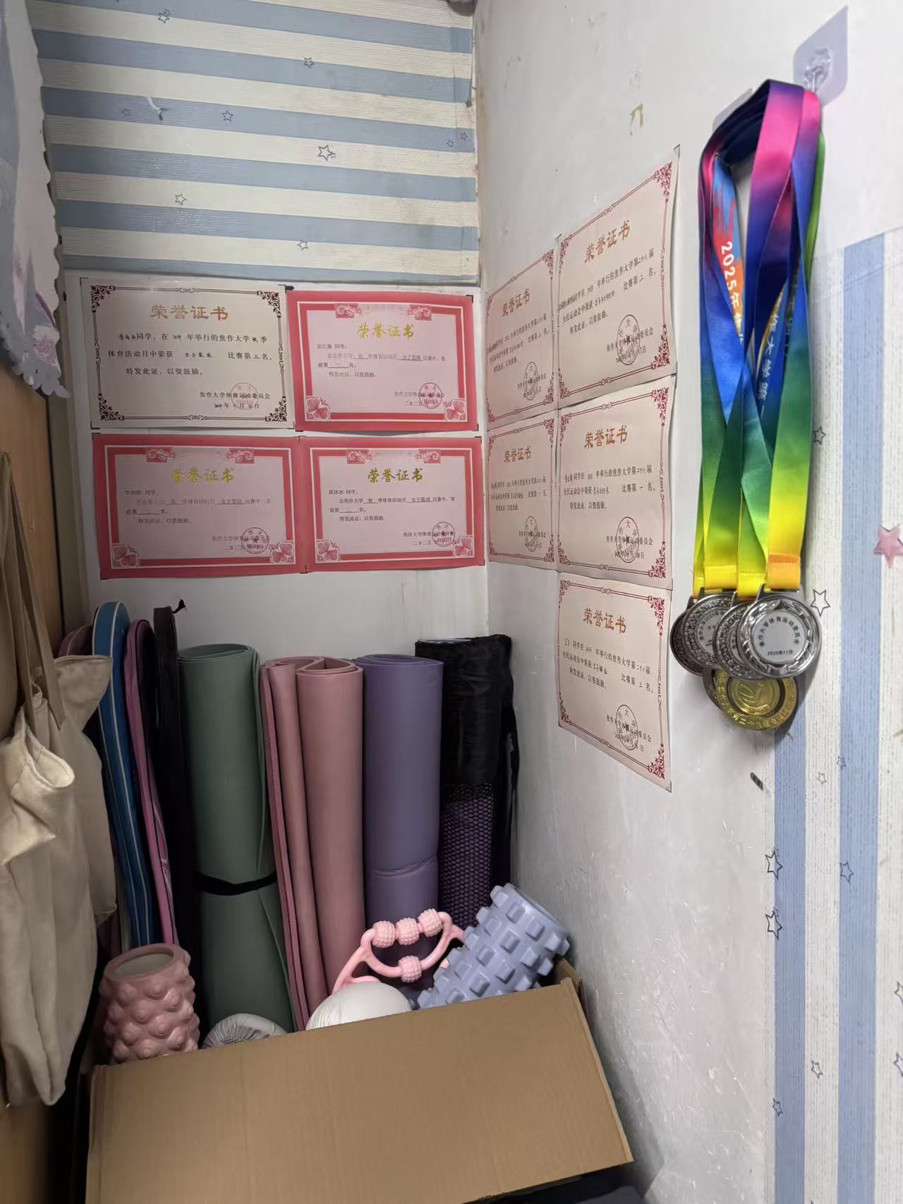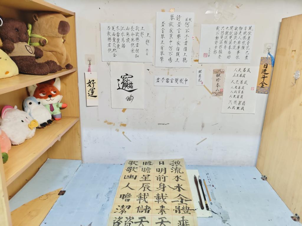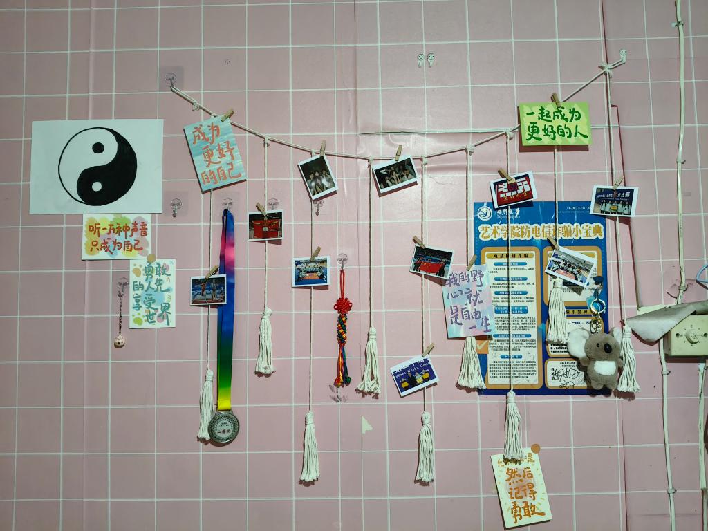 12月初,由学生处牵头组建联合评审团进行实地考察评审,活动成效在多个维度显现。在安全卫生领域,重点排查违规电器使用与消防通道堵塞问题,推动问题宿舍完成整改;对应桌面无积尘、被褥叠放整、公共区域无杂物的标准化要求,脏乱差现象大幅减少,尤其是北校区硬件设施基础较弱的重点区域整体情况大为改观,在年龄偏小的中职生宿舍中涌现出大量先进典型。特色宿舍评选见证了青春创意在方寸之间的绚烂绽放:“学霸”宿舍满墙的竞赛奖状与专业图纸构筑起学术文化墙;光影中流转的英雄人物画像,让岁月长河中的伟人与新时代的青年隔空相望;串联成画的诗词书签,飘散的书香墨香里藏着意味深远的文化意境;废弃纸盒裁剪拼贴的创意收纳,装点的树叶干花传递着自然美学理念;悉心装点的漂亮小屋,承载着宿舍成员的浪漫与温暖。学生们讲述着深夜讨论设计的灵感碰撞,分享打造温馨小家的实践乐趣。一帧帧图片、一段段讲述印证着,学生宿舍正从功能性的起居空间蜕变为承载专业理想与生活美学的育人单元。“一宿舍一风景”的文化矩阵在校园持续显现。更可贵的是情感纽带的深化,正如学生所言:“裁剪废弃纸箱时发现室友竟是手工达人,这些协作瞬间让‘睡在上铺的兄弟’真正成为家人。”