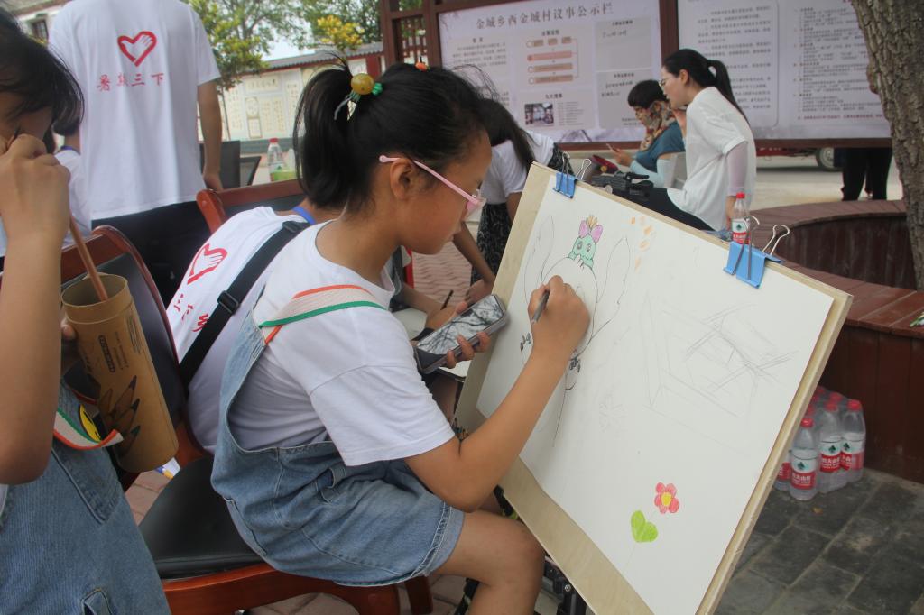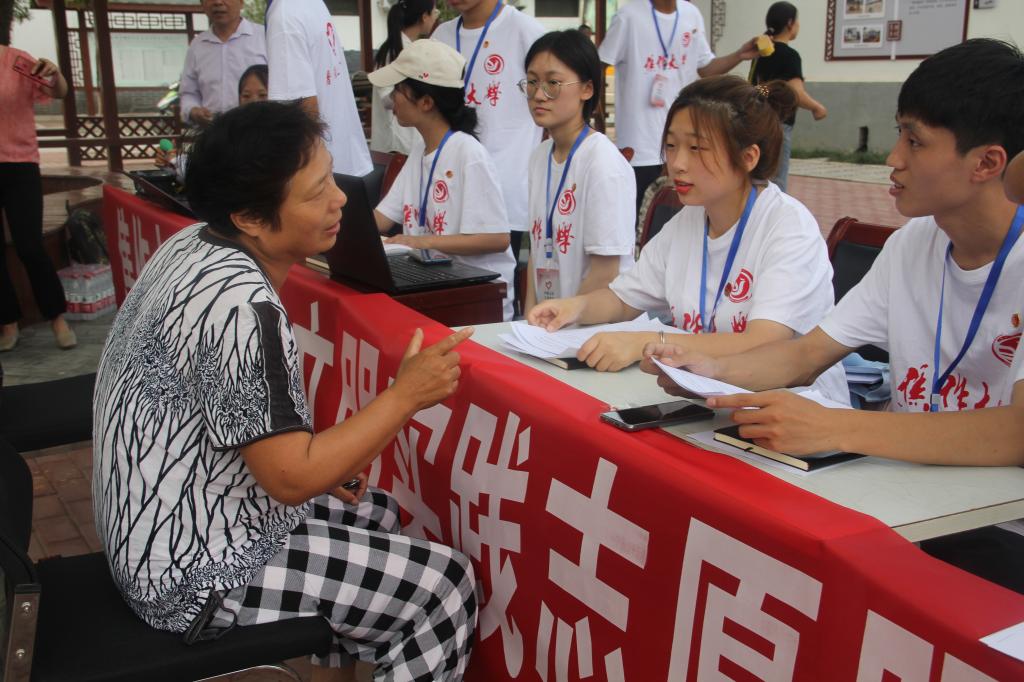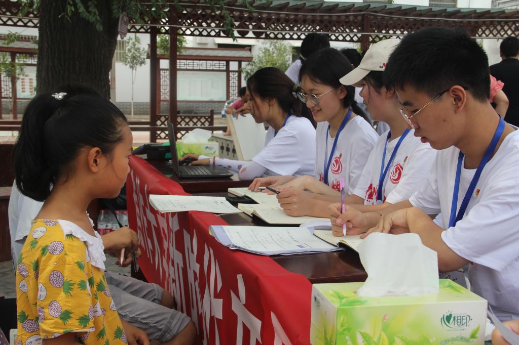 7月7日上午,实践队员统一着装,怀着满腔期待与奉献的心到达博爱县金城乡西金城村。博爱县委宣传部副部长袁金胜看望服务团成员,对我校组织此次社会实践活动表示欢迎。栗岩介绍了此次社会实践的服务项目、活动安排以及实践队员情况。期间,博爱电视台对我校此次活动予以报道。