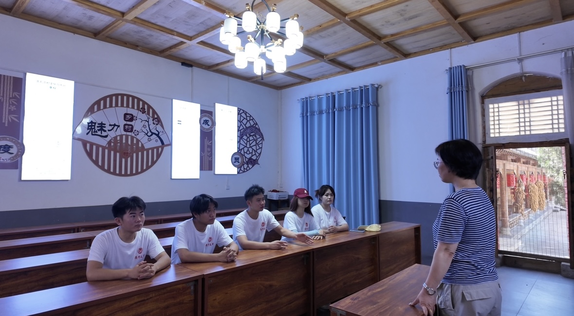 为确保实践活动落地,团队提前开展“文献寻”行动,辗转多所图书馆,梳理马村区古建筑、民俗、红色故事等史料,搭建理论框架。首站探访白庄村升级改造后的村史馆,其从400平方米扩建至近千平方米,以八大展区为脉络,借现代技术再现村庄变迁。队员们在抗战实物展区聆听“白皮红心”英雄故事,体悟民族气节。非遗传承现场,队员与刘氏唢呐传承人交流,其融合唢呐与怀川高腔,创新教学模式,让古老技艺焕发生机。党员们记录表演细节,结合专业知识分析乐器声学构造,提供跨学科视角。探访下马村王家祠堂,这座清乾隆年间的砖木建筑,精巧结构令队员驻足。东院私塾旧址变书画院,定期举办文化活动。