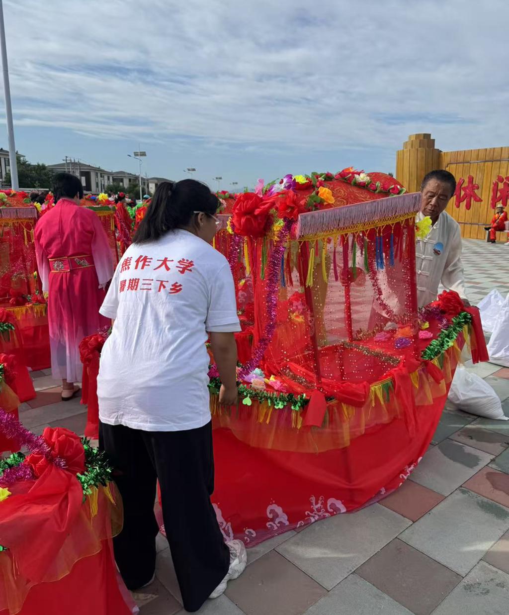来自内蒙古自治区赤峰市的张喆同学,暑期返回家乡后主动参与民俗活动。他与身着传统服饰的居民携手,从协助整理道具、学习传统动作,到深度感受民俗文化魅力,以实际行动搭建起青春与传统文化的桥梁,让课堂所学与乡土传承相互交融,在实践中领悟文化传承的温度,书写属于青年的文化传承篇章。