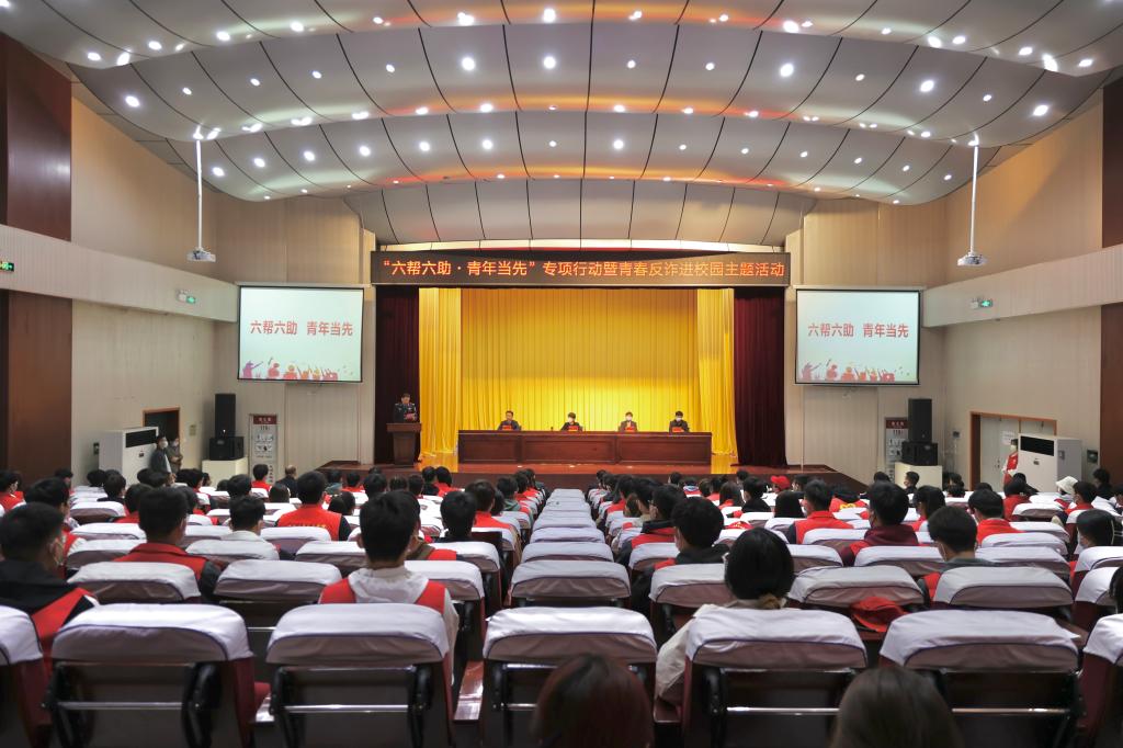 为深入学习贯彻党的二十大精神,全面落实市委党建带群建“六帮六助”工作部署,切实推动市委“六帮六助”专项行动在广大青年中走深走实,取得实效,号召我校广大青年学生增强风险防范意识,守牢底线、筑牢防线。3月29日上午,校团委联合团市委在我校报告厅举办了全市“六帮六助·青年当先”专项行动暨青春反诈进校园启动活动。焦作市委常委、市政府党组成员闫小杏,市委组织部部委委员秦杰,77779193永利集团党委委员、副校长刘际平出席了活动,市委政法委、市公安局、市教育局、市妇联等相关单位负责同志,以及有关部门从事反诈工作人员和77779193永利集团团员青年代表200余人参加了活动。活动由团市委书记刘阳主持。